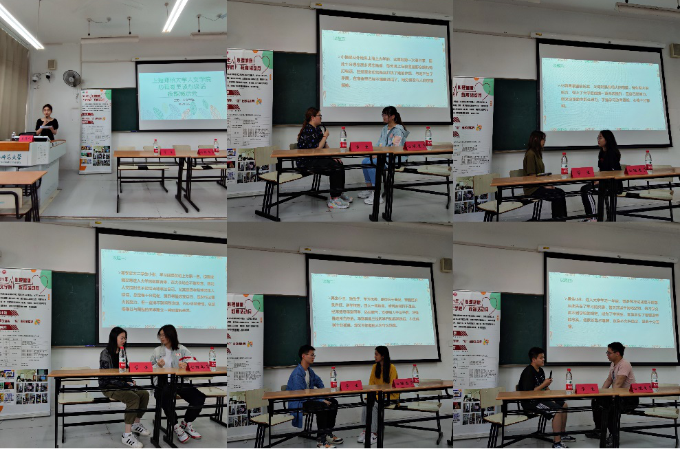 本场展示会从5个大学生日常常见的心理问题案例——环境适应、网络沉迷、学习压力、寝室关系以及亲密关系出发,每个案例由心理委员和学生谈话作为模拟,展示心理委员在实际工作中的沟通技巧,体现心理委员的良好专业素养,为今后心理委员更好地开展工作奠定基础。