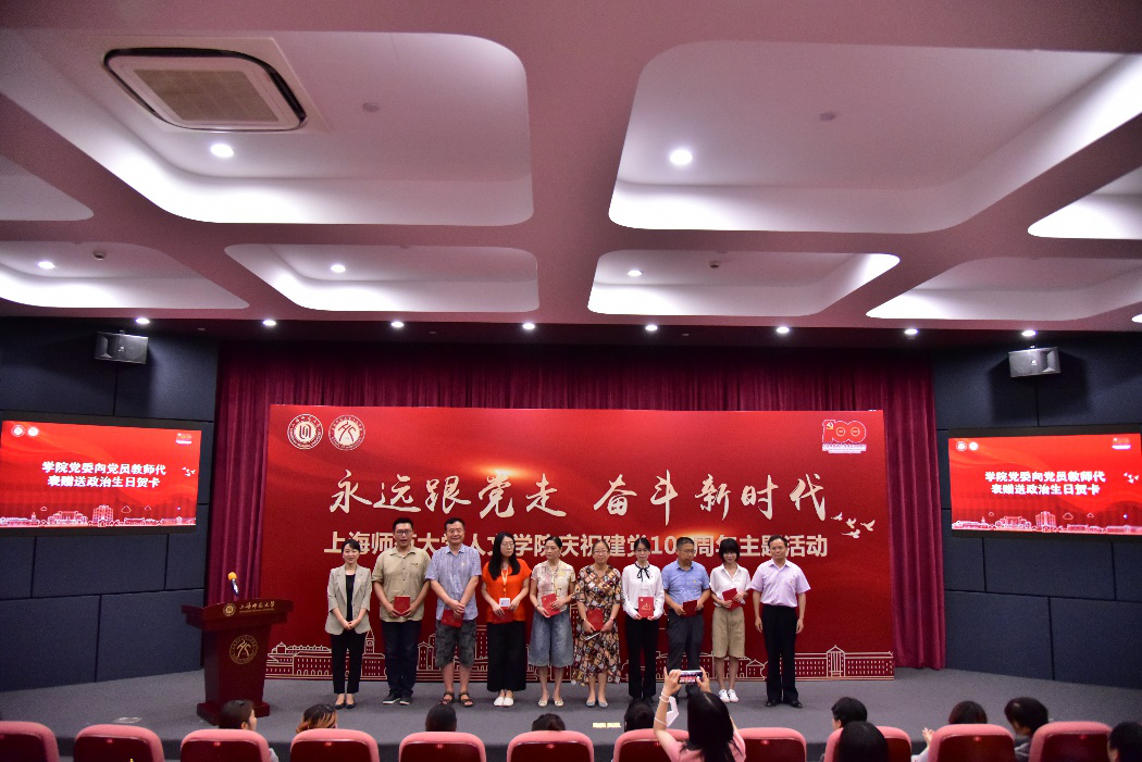 活动中,学院党委向教师党员代表赠送政治生日卡片,希望党员们能始终以初心强信心,永葆党员先进本色。