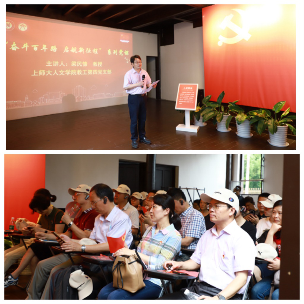 在“二大会址”中,学院教工第四党支部党员梁民愫教授为师生党员以“江西三杰与马克思主义在江西的传播”为题,开讲“奋斗百年路,启航新征程”系列党课。随着新文化运动和马克思列宁主义在全国的传播,江西在外求学求职的袁玉冰、赵醒侬、方志敏等一大批先进知识分子,返回江西后建立革命团体,出版进步刊物,为马克思主义在江西的传播作出了卓越贡献。