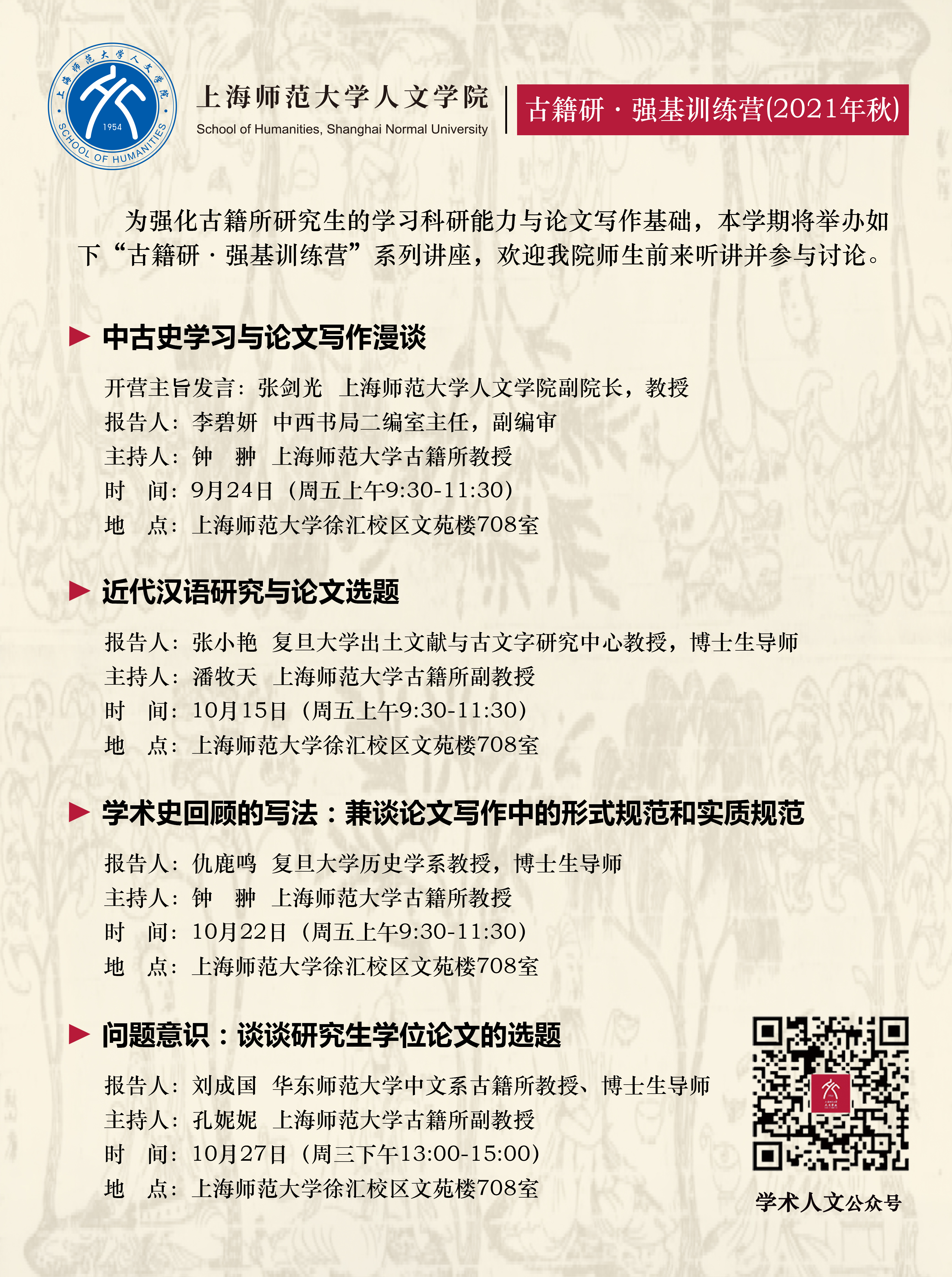 MK官方网页版古籍研•强基训练营(2021年秋)