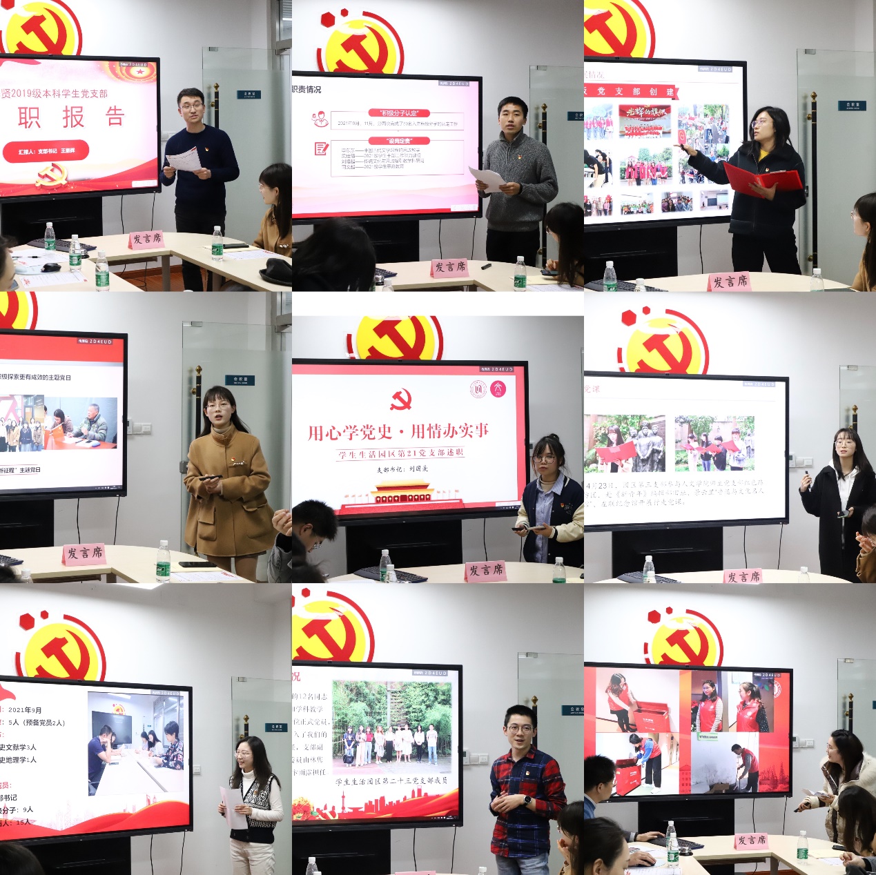 随后,各学生党支部书记全面回顾一年工作情况,围绕各支部党史学习教育开展情况、学生党员政治引领、入党启蒙动员、入党积极分子培养、学生党员积分制管理、学生党员常态化教育、“设岗定责”活动以及支部书记履职情况等方面一一汇报,并就目前存在的不足和今后努力的方向总结展望。