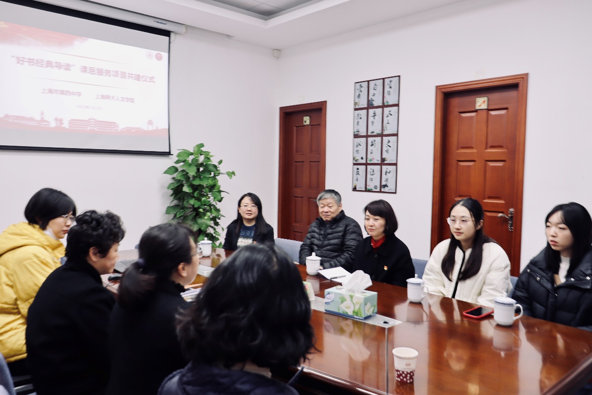 2022年1月4日中午,上海市第四中学与MK官方网页版MK(中国)“好书经典导读”课后服务项目共建仪式在上海市第四中学会议室举行。上海市第四中学和MK官方网页版MK(中国)负责人、徐汇区教研员上官老师、MK(中国)中文系詹丹教授和大学生讲师团代表出席会议。
