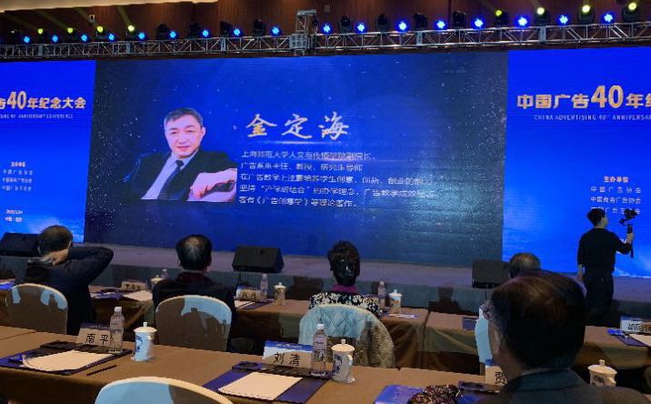 1月14日,由中国广告协会、中国商务广告协会、中国广告主协会共同举办的中国广告40年纪念大会在北京国家会议中心举行。本次大会中,我院金定海教授获得“中国广告40年广告学人代表(1979年-2018年)”荣誉。