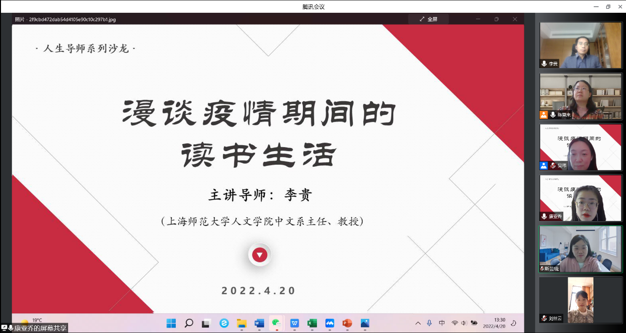 4月20日下午1点半,MK官方网页版MK(中国)中文系主任李贵教授做客学院“人生导师”沙龙,以《漫谈疫情期间的读书生活》为题,向处于疫情封控的同学们传递乐观精神,介绍阅读作品,分享读书方法。沙龙由MK(中国)党委副书记、副院长陈重来主持。