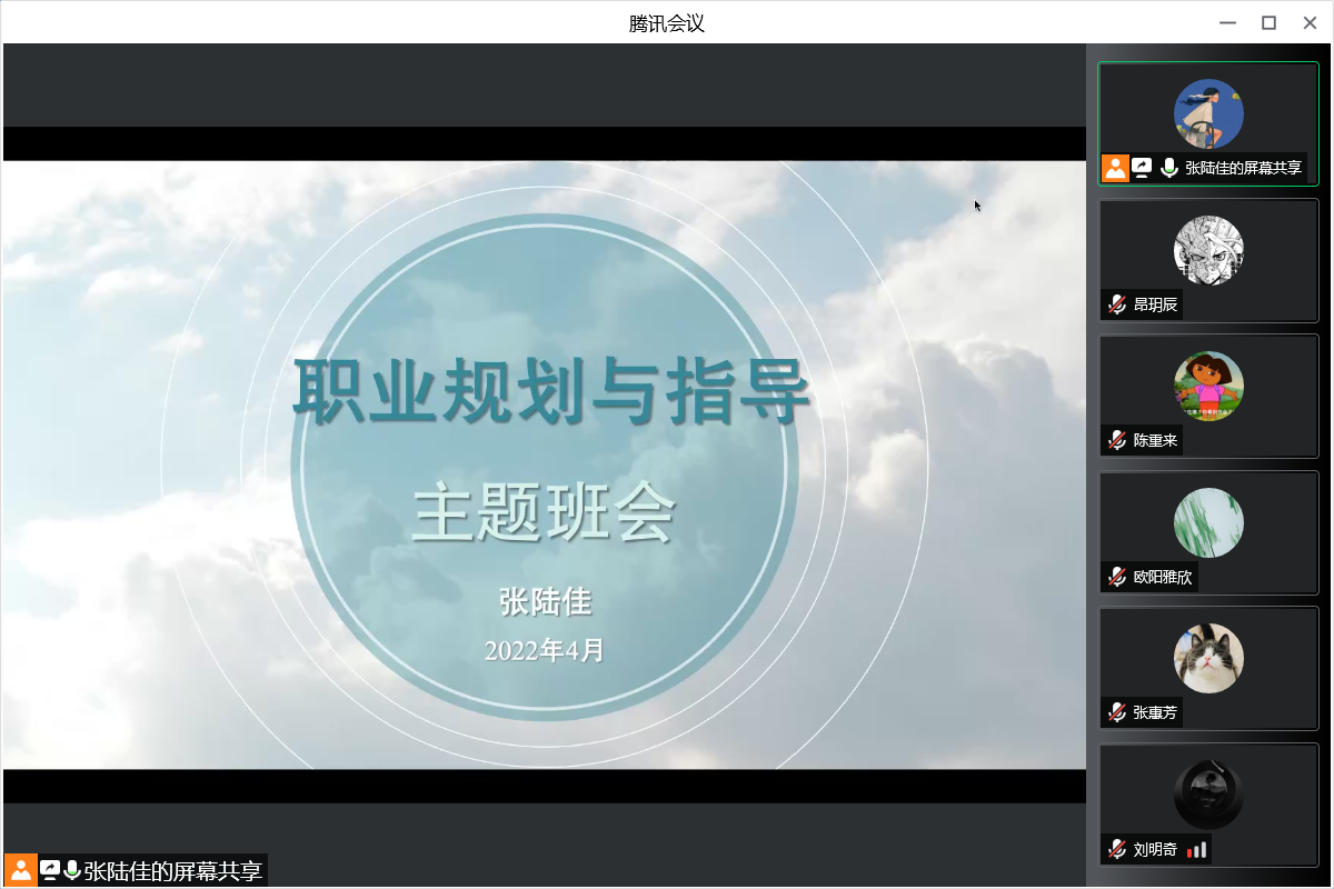 会上,张陆佳老师指出,封控生活虽然给同学们的学习、生活带来一定影响,但也是审视、反思和调整自我的机会,要抓住“黄金时间”做一场“闭关修行”。在前期问卷调查的基础上,张老师结合近年来就业形势的变化提醒同学们:一要尽早着手毕业论文写作,二要结合实际情况选择就业方向,从认识自己、认识职业和认识自己同职业的匹配度三个维度选择适合自己的岗位。张老师就公务员和事业编制考试、企业招聘等方面向同学们进行介绍,并围绕行业现状、工作性质、备考内容等因素,为大家进行就业的组合选择与准备提供了建议。