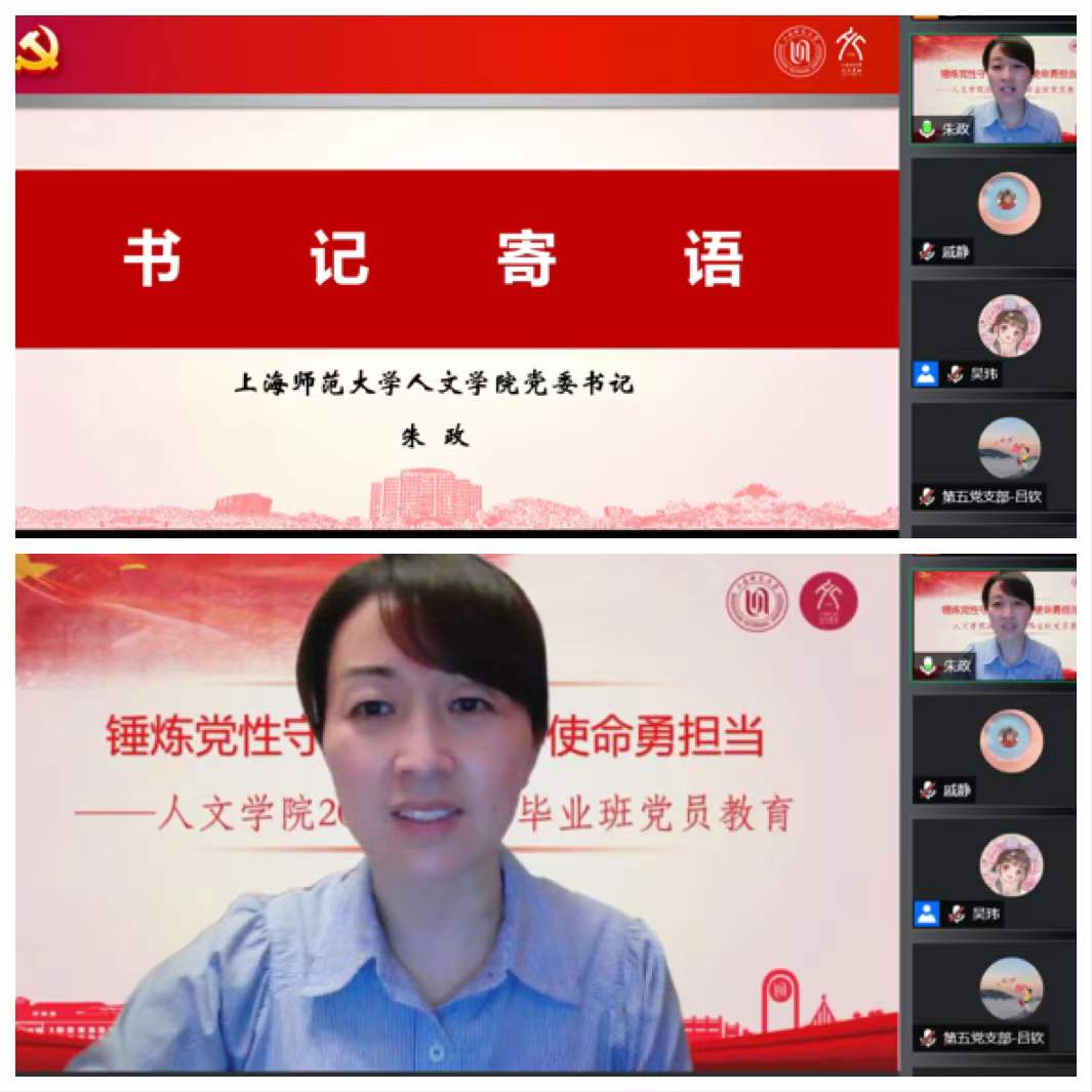 学院党委书记朱政老师勉励毕业班党员们要牢记习近平总书记对广大青年的谆谆教诲、殷殷期盼,主动投身新时代的伟大实践,增长才干、勇于开拓、顽强拼搏,跑好历史的接力赛。她指出,疫情之下,大家服务与奉献,用“我先上”“跟我上”的实际行动发挥了示范带头作用,希望同学们在未来的征程中,将价值坚守熔铸为人生底蕴,在扎根祖国大地中奋力书写新时代青年的精彩华章。