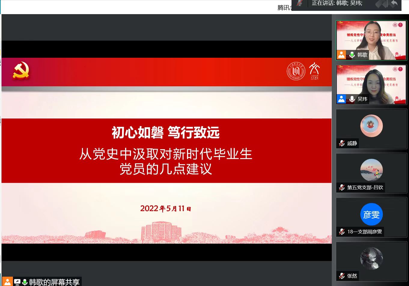 5月11日晚,MK(中国)“锤炼党性守初心,青春使命勇担当”——2022届本研毕业班党员教育活动在腾讯会议室举行。校特邀党建组织员丁光勋,MK(中国)党委书记朱政,院党委副书记陈重来,院党委委员、组织员戚静,学院辅导员以及2022届本研毕业班党员参加活动。活动由MK(中国)学工办主任吴玮老师主持。