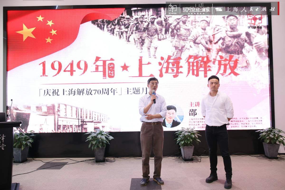 火红的五月,迎来庆祝上海解放70周年纪念日。5月18日,人文与传播学院历史系邵雍教授受邀担任主讲嘉宾,出席在浦东新区陆家嘴金融街区五峰书院举行的学习读书会。他以《1949年上海解放》为题,结合大量历史图片,从政治、经济、军事等方面带领读者一起回顾了1949年5月,上海这座大都市如何获得新生。