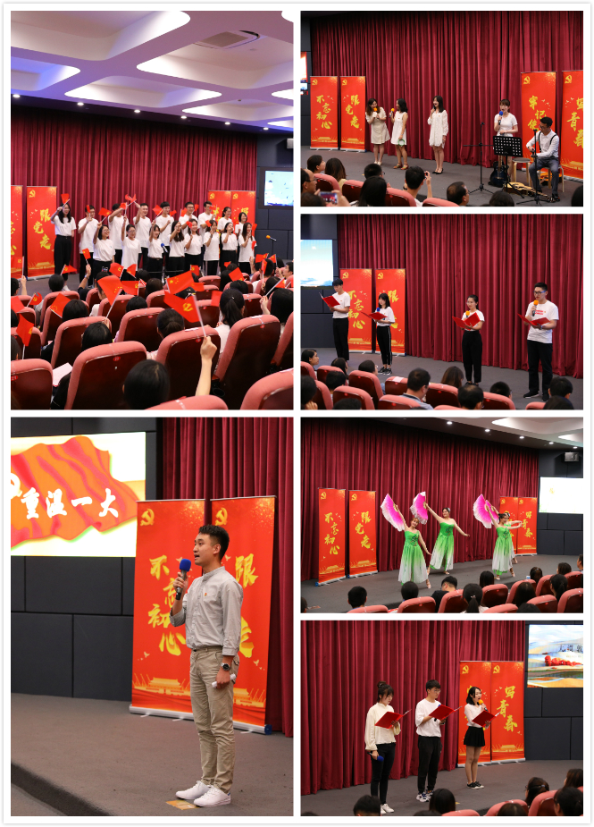 行程万里,不忘初心;饮水思源,恒心不移。在“牢记使命写青春”活动下篇庆七一节目展演中,研究生党员们用形式多样的文艺节目表现了当代青年奋进新时代、筑梦新征程的昂扬姿态,用朝气蓬勃的青春奋斗向祖国母亲献礼向七一建党献礼。学院领航理论宣讲团成员王振辉为大家讲述建党故事,重温这座城市的红色记忆。诗朗诵《祖国颂》歌颂了中华民族悠久的历史文化积淀,激发起与会师生们对祖国的无限深情。迈进新时代,各族人民团结奋进,不断创造美好生活,民歌联唱《民族共唱祖国好》用热情的维吾尔民歌、活泼的西南山歌、高亢的陕北信天游绘就了一副共和国改革发展的壮丽画面。舞蹈《茉莉花》经过青年党员的演绎,细腻中饱含着激情,灵动中透露着坚定。朗诵《大漠敦煌》又将大家的思绪带向古老的丝绸之路,在各国文化交流并进的绿洲上,中华民族与世界各国共筑人类命运共同体的美好明天。合唱《我和我的祖国》压轴登场。台上的演员们动情歌唱祖国的每一座高山,每一条河流;台下的师生们挥动起手中的国旗、党旗,跟着歌声一起倾诉出心中对伟大祖国的深深爱恋。一曲唱罢,报告厅里响起热烈的掌声,将整场演出推向高潮。