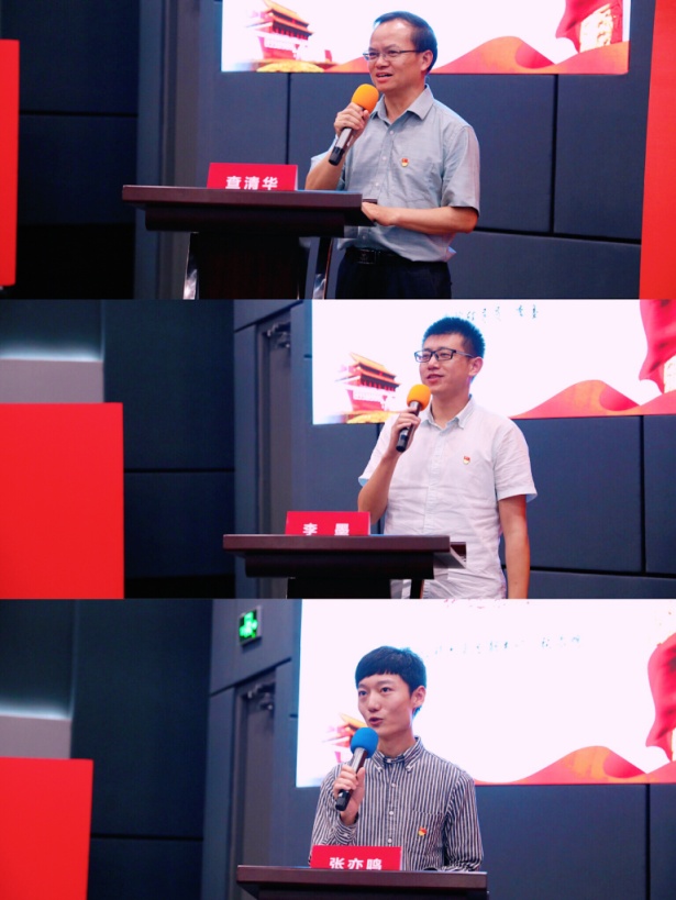 微型党课之后,教工第五支部党员教师、学院党委副书记、院长查清华、学院辅导员李墨以及2018级硕六党支部书记张亦鸣一一讲述他们的入党故事。查清华生动讲述了他与党组织一波三折的情缘,因目睹在家乡抗洪救灾第一线普通党员们的身体力行与无私奉献,他重新坚定了入党愿望。而立之年加入中国共产党的他,始终受到身边模范榜样“全心全意为人民服务”精神力量的感染,也在时间锤炼和现实考验面前不断坚守入党初心。李墨的分享从与党员爷爷关于学习方法的三次循序渐进的谈话说起,回顾加入中国共产党以来的十个年头中的各种酸甜苦辣,是党员身份的职责与使命陪伴他从岭南的大山田野走到了魅力之都上海,陪伴他走过了迷茫与遗憾,找到了前行的方向;张亦鸣回忆童年时期与祖辈生活中对党的理论与历史的耳濡目染,从一名青年学生党支部书记的角度出发,畅谈应该如何将初心更好地践行于日常的学习生活工作中。