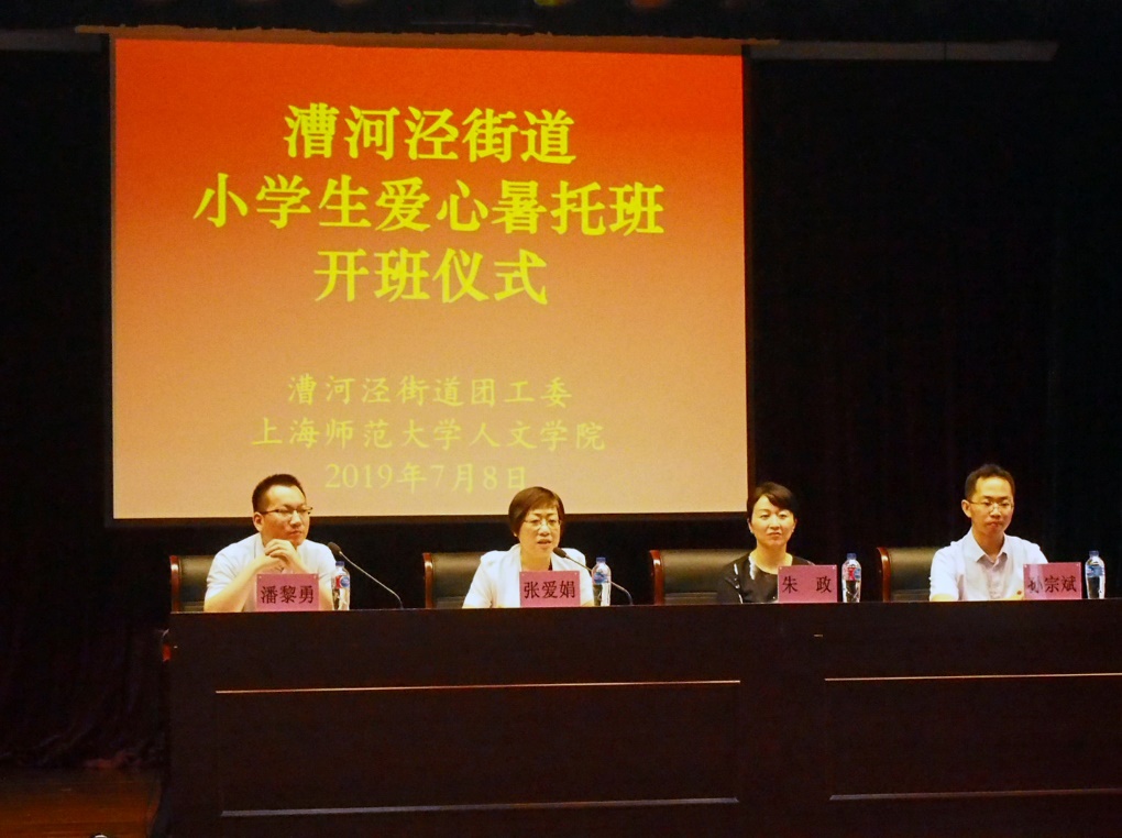 2019年7月8日上午,我院漕河泾街道爱心暑托班开班仪式在漕河泾社区文化中心顺利举行。漕河泾街道党工委副书记张爱娟、团工委负责人孙宗斌、MK官方网页版团委书记潘黎勇、学院党委常务副书记朱政出席仪式。本期暑托班校长、学院2016级历史学(师范)专业韩永生担任主持。
