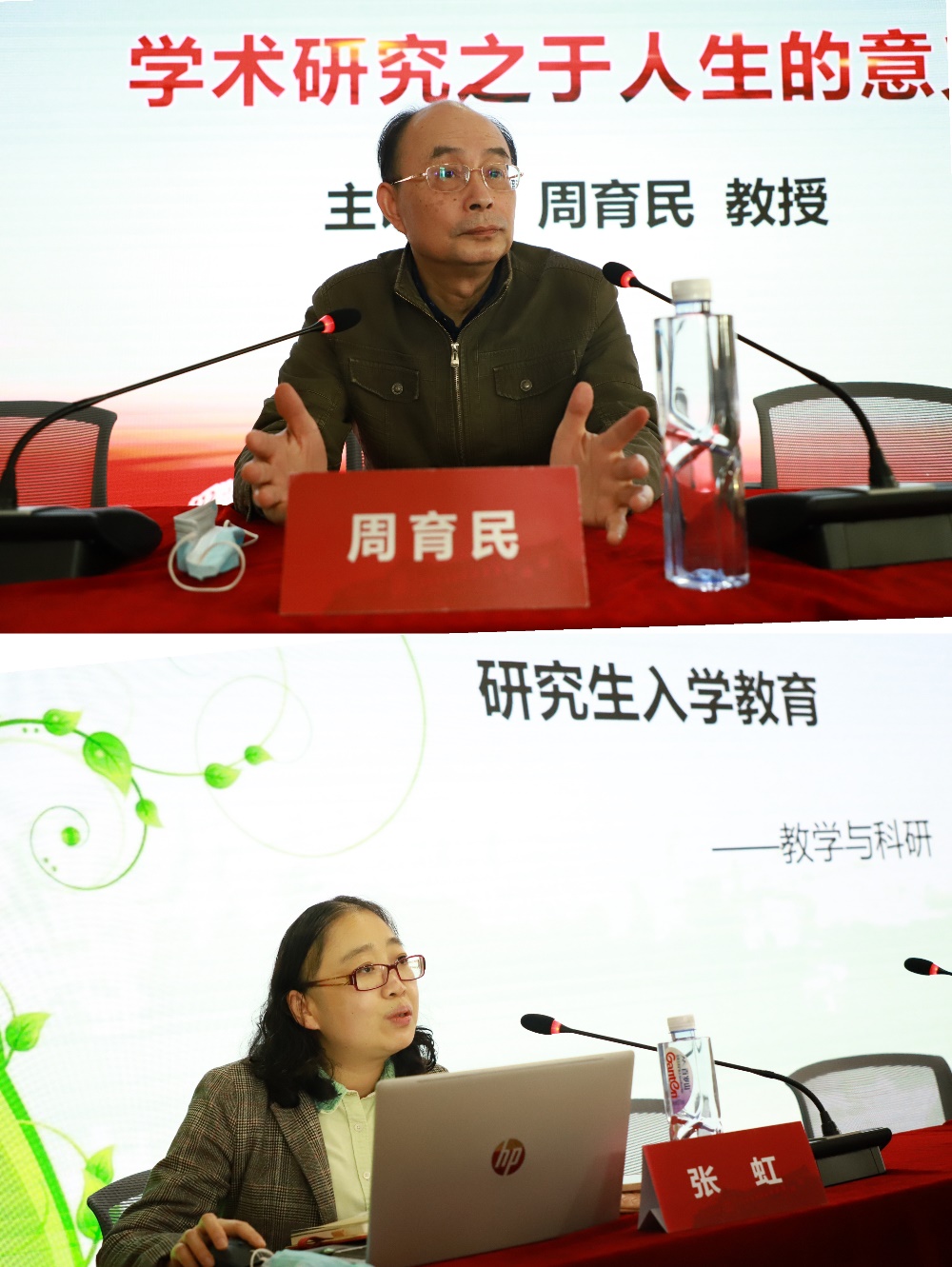 学院科研与研究生教育办公室主任张虹老师就研究生的教学与科研作了介绍。她向同学们细致介绍了研究生阶段的学习流程、课程设置、学分要求和学院相关资源保障等,帮助新生们科学规划学习生活。