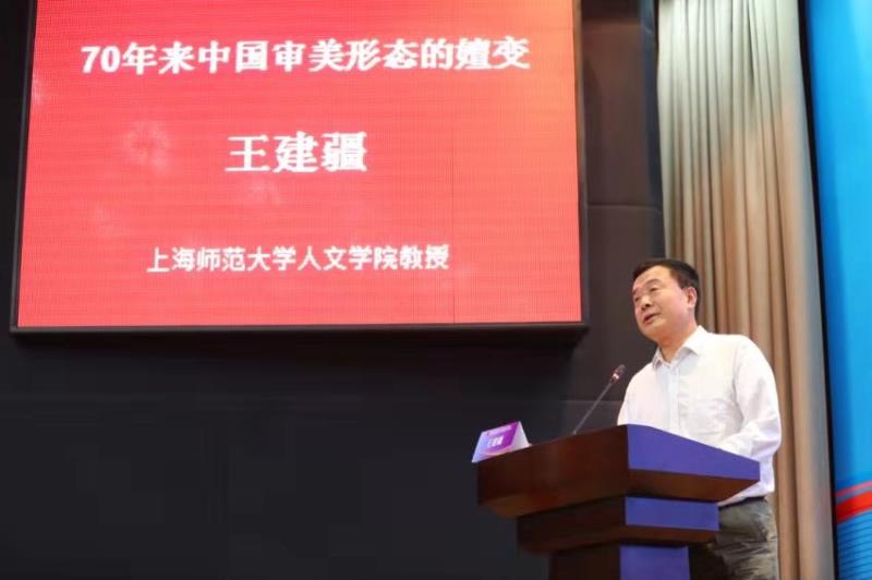 王建疆教授演讲的题目是“70年来中国审美形态的嬗变”,用他自创的别现代理论从“土美伴随伪崇高”“悲喜交加换新颜”“古韵老腔发新声”“疑似形态竞自由”四个方面概括了中国当代审美形态的历史,受到高度评价。大会主持人、上海社会科学院文学所所长荣跃明博士在总结评议时说:在党和国家积极推动话语体系创新的当下,王建疆教授的别现代主义以它的思想性、理论性和说服力给我国当代人文学科的话语体系创新做出了表率。