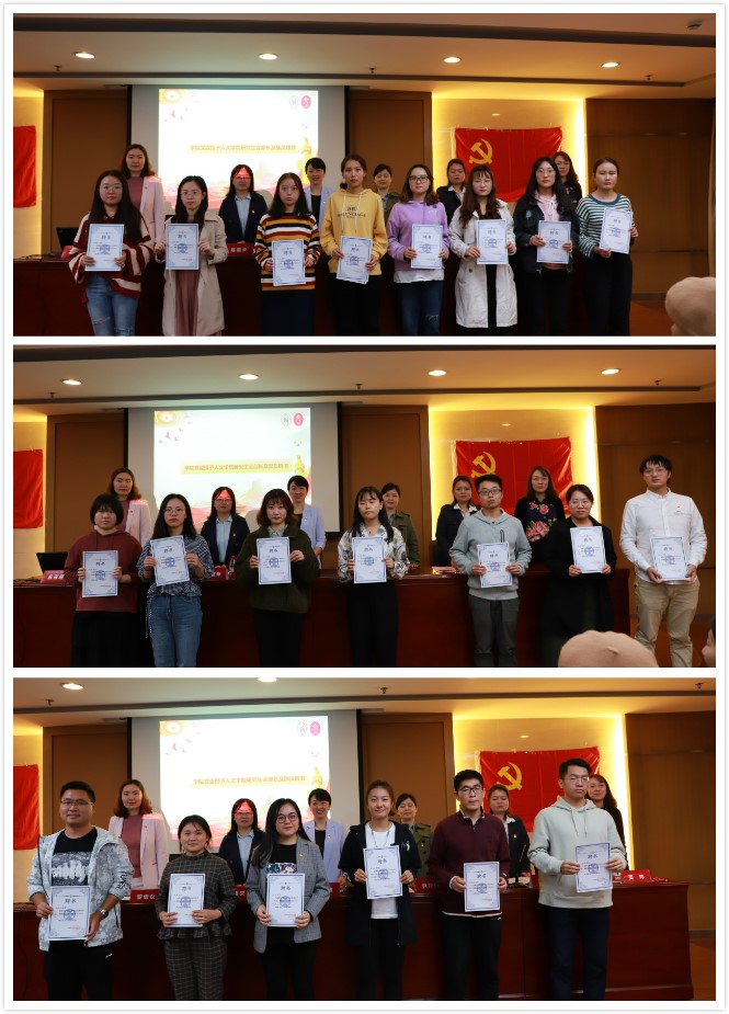 会上,学院党委常务副书记朱政介绍了学院开展“不忘初心、牢记使命”主题教育的背景、目的和内涵,以及自9月以来学院推进主题教育的情况,并从厚植理论是守初心、担使命的基石钥匙;剖析自审是守初心、担使命的内在要求;为民担当是守初心、担使命的灵魂根本三方面对在2019级研究生党员中开展主题教育提出明确要求。学院党委委员、组织员陈重来就“不忘初心、牢记使命”主题教育、设岗定责工作和党员积分制管理三方面作具体工作部署。学院党委授予研究生党支部书籍《初心与使命》,授予学院新聘研究生会部长及部员聘书。