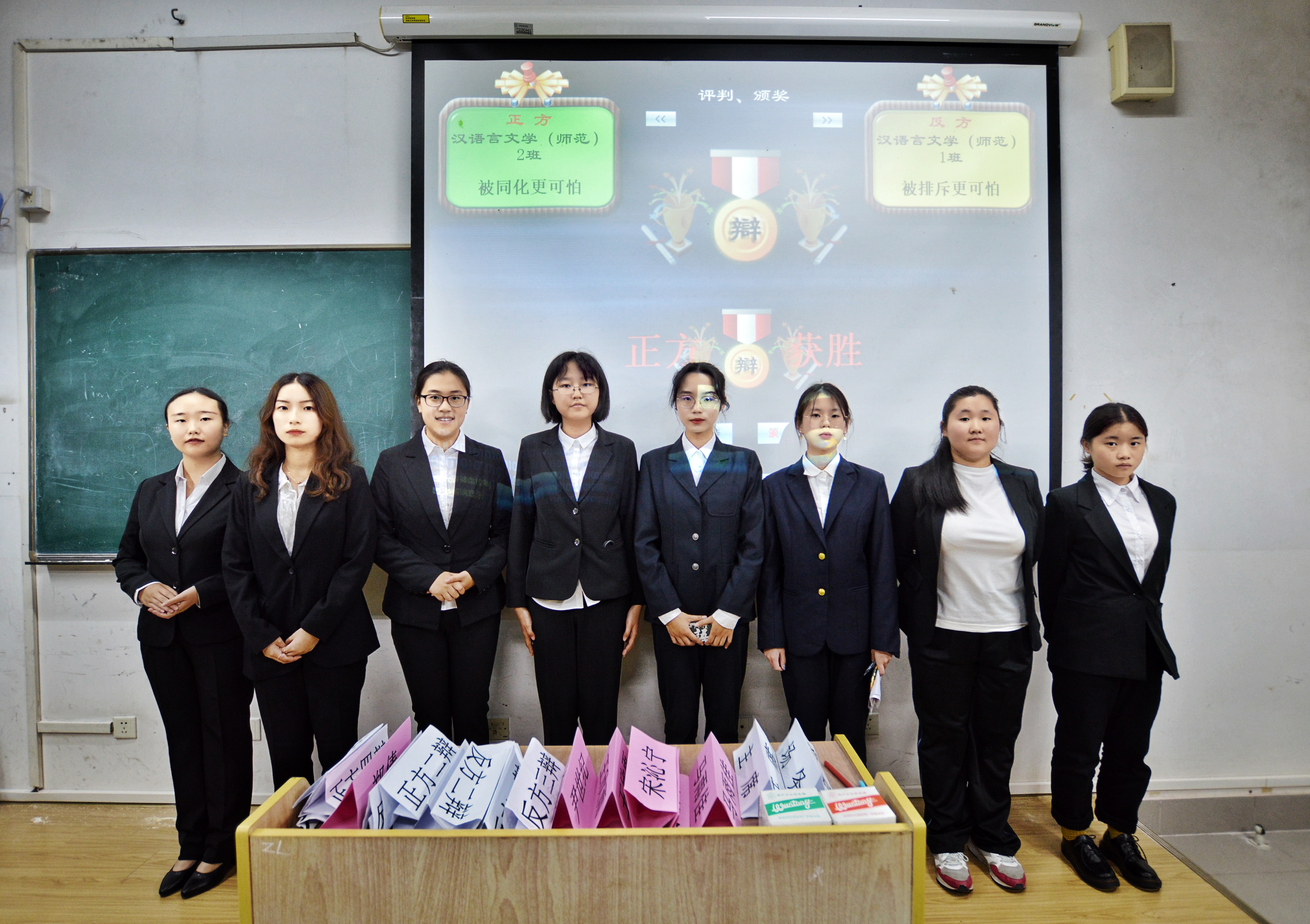 10月16日下午四点,“敏思杯”半决赛在奉贤校区三教208如期举行。经过各班辩论队的激烈角逐,挺进半决赛的队伍分别是2019级汉语言文学(师范)2班和2019级汉语言文学(师范)1班。本次半决赛的辩题是:被同化和被排斥哪一个更可怕。