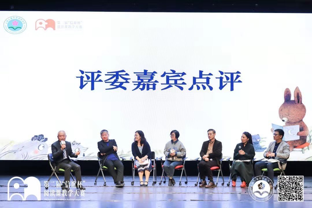 10月26日,副编审、资深儿童媒体人,儿童文学阅读推广人叶凤春女士首先做了《十年耕耘,一朝收获》的主题演讲,为第二届“信谊杯”阅读课教学大赛拉开序幕。大赛的主题是儿童本位的文学阅读教学,评审标准为“三性三化”原则:文学性:以推动儿童文学阅读教学的文学化进程; 趣味性:以推动儿童文学阅读教学的趣味化进程;思辨性:以推动儿童文学阅读教学的思想化进程。六堂决赛课各有特色,经大众评审和专家评审投票决出各奖项,专家评审为获奖者颁奖并对六位选手做点评。