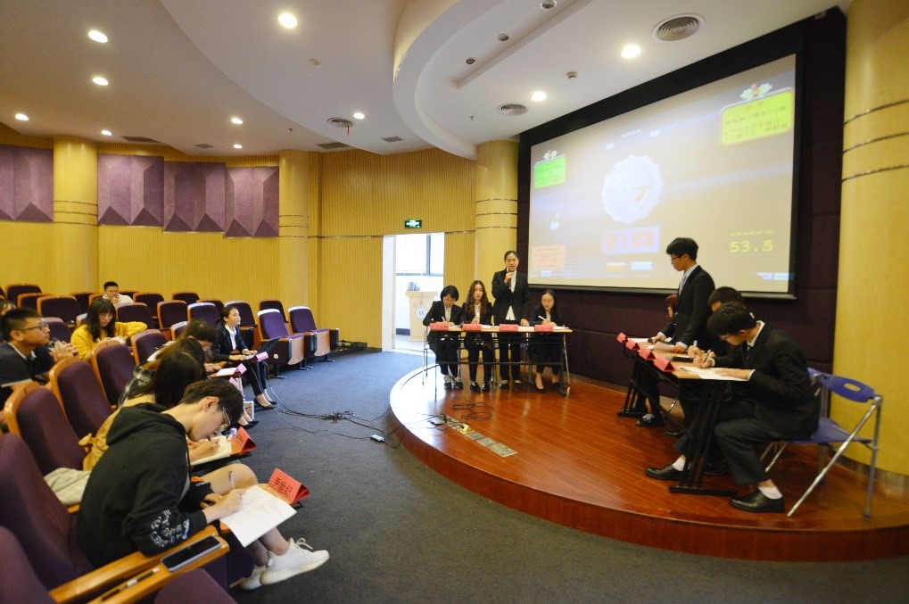 10月23日下午四点,我院“敏思杯”辩论决赛在图文信息中心二楼拉开帷幕。学校团委副书记杨纯婷老师、学院团委书记张玲老师、学院2019级本科生辅导员李墨老师、谭苇禾老师作为嘉宾出席了本次活动;同时到场的还有学院团委、学生会、融媒体中心代表以及2019级各班代表。