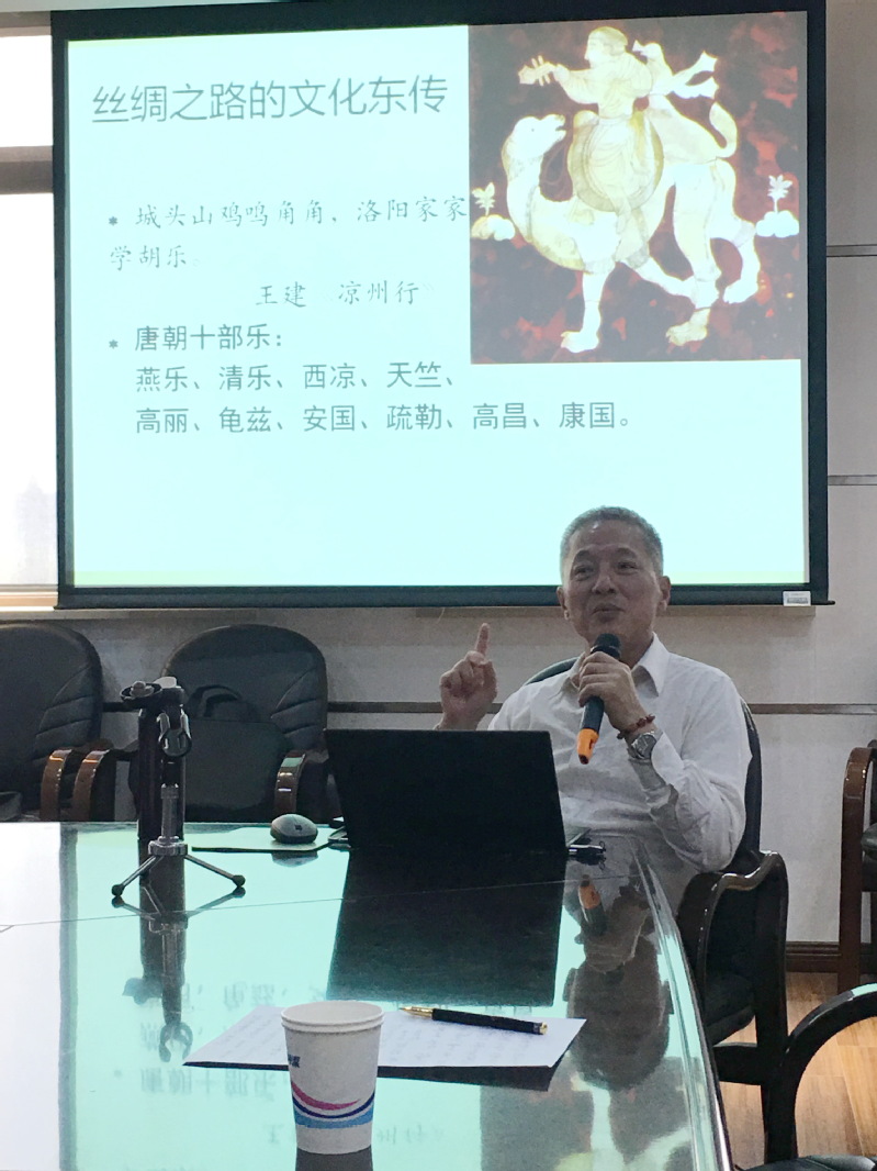 10月30日下午,复旦大学历史学系著名学者韩昇教授应邀在文苑楼708会议室,为我校师生作了题为《悠扬的歌:千年密藏的唐朝乐器》的学术讲座。本次讲座由我院俞钢教授主持。