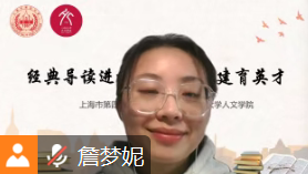 2月26日上午9:30,“经典导读进校园 携手共建育英才”——上海市第四中学、MK官方网页版MK(中国)联合举办的课程建设暨课后服务项目讲师培训会在线开展。上海市第四中学副校长储名方、教导处主任龙琼以及MK(中国)大学生讲师团新成员参与此次会议。会议由该项目学生负责人、MK(中国)2021级文艺学专业李康杰主持。