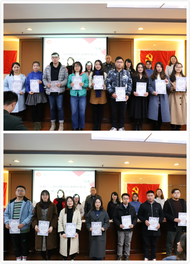 活动中,与会老师为2019级研究生导生团颁发聘书。研究生辅导员吴玮就征兵工作和历年征兵政策作说明,鼓励号召与会同学能牢固树立全民国防观念,积极关心支持国防建设,为保卫中华,壮我中华,奉献自己的一份力量。