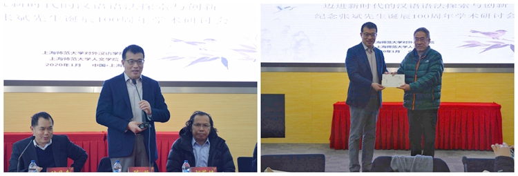 副校长陈恒就张斌先生的学术精神及我校语言学的发展状况发表讲话,他指出张斌先生用博大的胸怀为教育事业贡献一生,用六十三载教学生涯践行立德树人的初心。师大人要继承张斌先生的治学精神,探究新时代语言研究的创新发展,进一步推动汉语的国际化推广。开幕式最后,陈恒为张斌先生亲属张亦林先生颁发张斌先生手稿书籍捐赠证书。