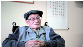 张斌在龙华医院接受记者采访。今年96岁的他虽长时间卧床休养,但仍仪容得体、思维敏捷,乐于与年轻人交流学习。