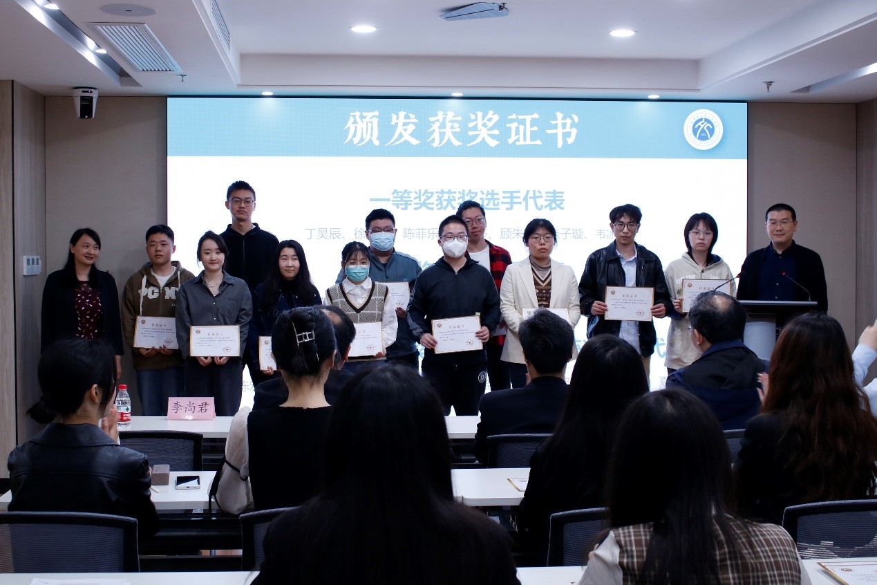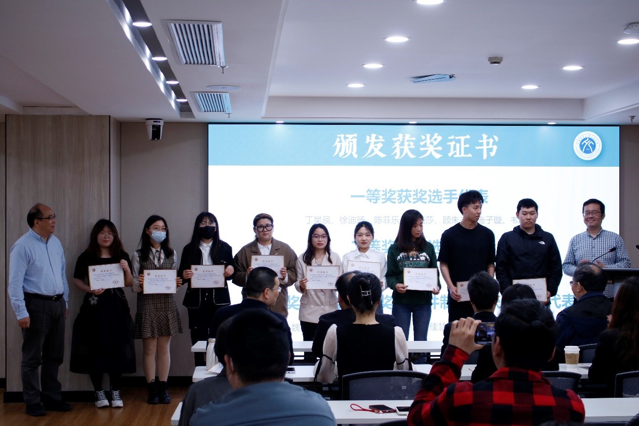 致辞结束后,本次活动进入了第二个环节——比赛回顾,老师和同学们通过10分钟的视频回顾了各位参赛选手的精彩表现。伴随着各位选手参赛的身影,本次活动进入了备受期待的环节——颁奖仪式。由历史学系系主任徐茂明教授宣读“流金杯”历史学科学生教学技能比赛获奖名单,於以传老师、朱志浩老师为一等奖获奖选手代表颁发获奖证书,徐茂明老师、薛理禹老师为二等奖获奖选手代表颁发证书,李尚君老师、刘琼敏老师为三等奖、教学设计奖、课件制作奖获奖选手代表颁发证书。