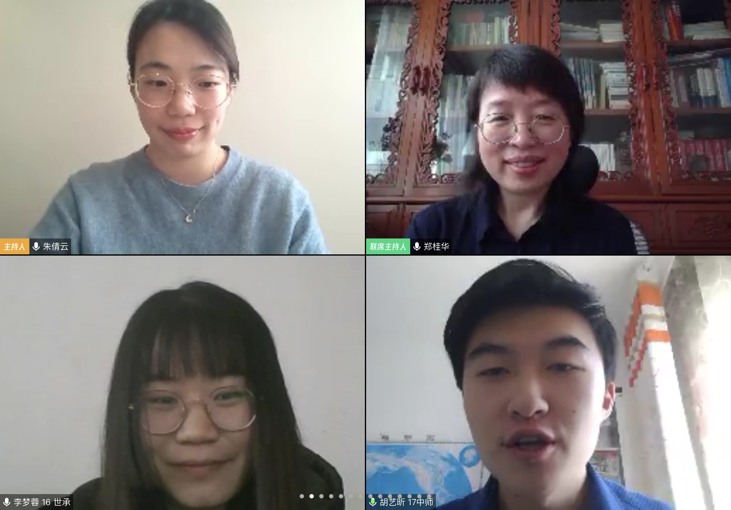 沙龙最后,同学们就郑桂华教授谈到的内容视频连线互动。郑桂华教授对大家提出的问题给予详尽耐心的指导与鼓励,再次强调“眼中有学生,心中有未来”这一不变的教学宗旨,并真诚分享自己的人生态度:人的一生会遇到天灾人祸,也不免因为这些磨难产生彷徨。一方面,我们要学会接纳自己,懂得与自己和解,从而不陷入低沉;另一方面,我们要勇于自我追问、自我突破,走到那颗流光溢彩的树的背面去看一看,从重复消磨的生命状态中遁出。