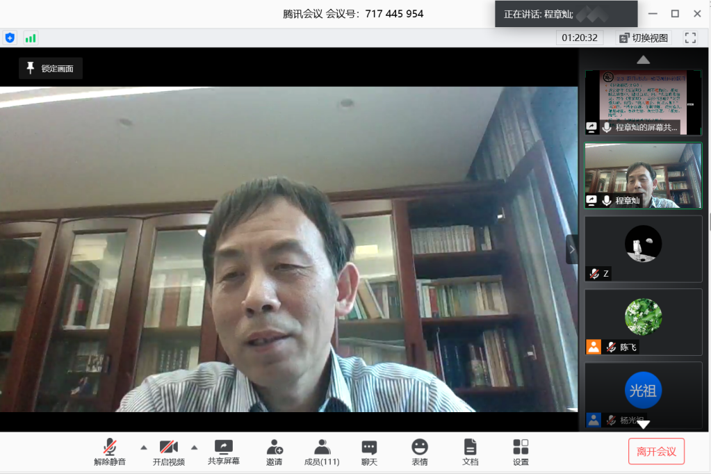 2020年5月8日上午9点半至11点半,南京大学文学院教授、图书馆馆长、古典文献研究所所长、博士生导师程章灿教授做客MK官方网页版MK(中国)“名师云讲堂”,通过腾讯会议平台为学院师生带来了一场精彩的学术讲座——“读诗示例:以谢混《诫族子诗》为中心”。讲座由MK官方网页版MK(中国)陈飞教授主持,李贵教授全程参与,并吸引了百余位研究生和青年教师线上聆听。