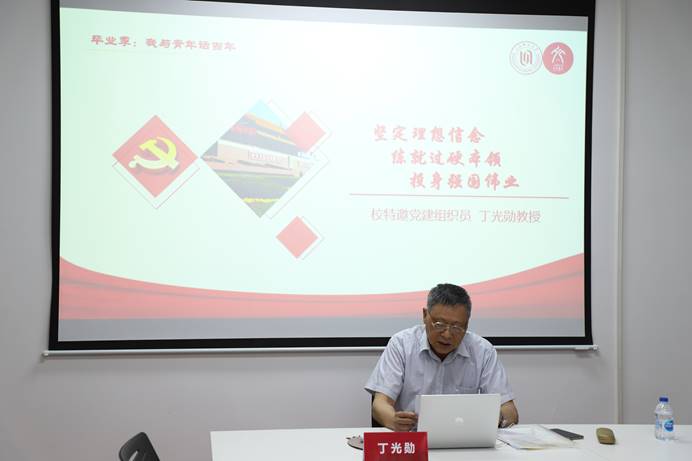 “作为一名党员,要在党言党,要做党的路线方针政策的宣传者、做朋辈帮扶、互助友爱的践行者,做就业创业、志愿服务国家需要的争先者。”学校特邀党建组织员丁光勋通过腾讯会议远程连线,为毕业班党员作“我与青年话当年”微党课——《坚定理想信念,练就过硬本领,投身强国伟业》。他深刻阐释“四史”教育的学习要义与内蕴价值,慷慨分享宝贵人生经历,希望全体毕业班党员同志们要把当下的“四史”学习视为一次重温初心的洗礼、一次助推发展的契机,重回历史原点寻找初心、重温历史脉络滋养初心;要尽快转换角色、融入社会,做一名社会主义的建设者和接班人;要不畏艰险,不骄不躁,不负韶华,积极投身于新时代中国特色社会主义建设事业中,为实现中华民族的伟大复兴作贡献。