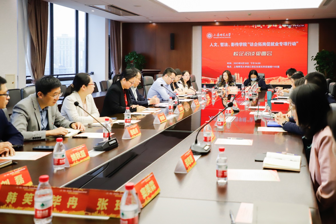 在交流研讨环节,蔡琼霞介绍了上师大2023届毕业生总体就业情况,希望校企双方能通力合作,积极为毕业生创造更大的成长和发展空间,搭建更优质的实践平台,拓宽就业路径。与会人员还就新形势下大学生创新创业能力的培养等方面与用人单位代表进行了深入交流。