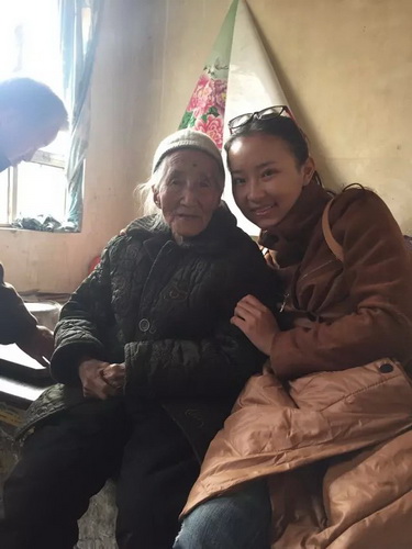 2015年11月,MK官方网页版纪录片摄制组在武乡县拍摄了老人们的控诉和生活。这是编导岳怡寒与郝菊香老人的合影。