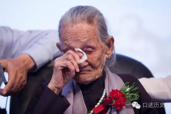 回忆起伤心往事,中国受害者卓天妹潸然泪下。2015年9月18日摄于MK官方网页版。图来自澎湃新闻