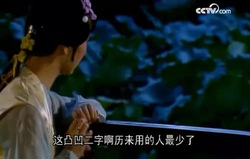 不料小说第七十六回写贾府过中秋节,老祖宗等众人在凸碧山庄联欢,黛玉和湘云为了躲清净,跑去水边的凹晶馆联诗玩。湘云说到这两处景点的命名,感慨说:“这山之高处,就叫凸碧;山之低洼近水处,就叫凹晶。这凸凹二字,历来用的人最少。如今直用作轩馆之名,更觉新鲜,不落窠臼。”最后断言:“只是这两个字俗念作‘洼’‘拱’二音,便说俗了,不大见用,只放翁用了一个‘凹’,说‘古砚微凹聚墨多’,还有人批他俗,岂不可笑。”