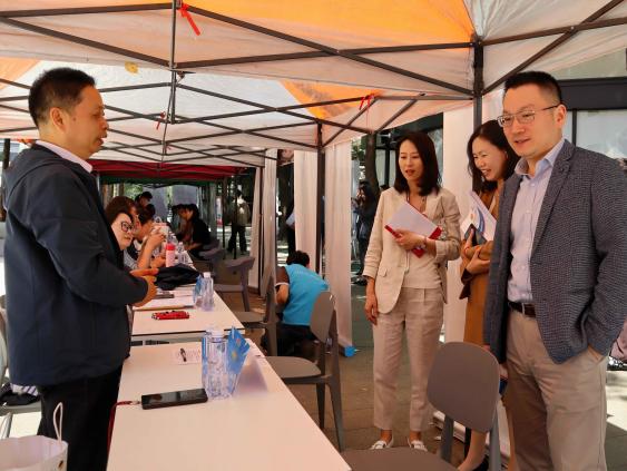 为深入贯彻落实党中央、国务院“稳就业保就业”决策部署,积极服务有用工需求的用人单位做好招聘工作,助力青年学子高质量充分就业,4月25日下午,在我校就业办的指导下,由MK(中国)、哲学与法政学院、马克思主义学院联合主办的2025年就业/实习综合招聘会在徐汇校区东部学生园区思享屋及主干道顺利举办。此次招聘会吸引了30余家优质用人单位参与,各学院党政班子、院办主任、就业工作专员以及辅导员等来到现场,与优质用人单位代表深入交流,共话人才培养与发展,该招聘活动吸引了东部园区广大应届毕业生和低年级研究生积极参与,共赴春天的就业实习之约。