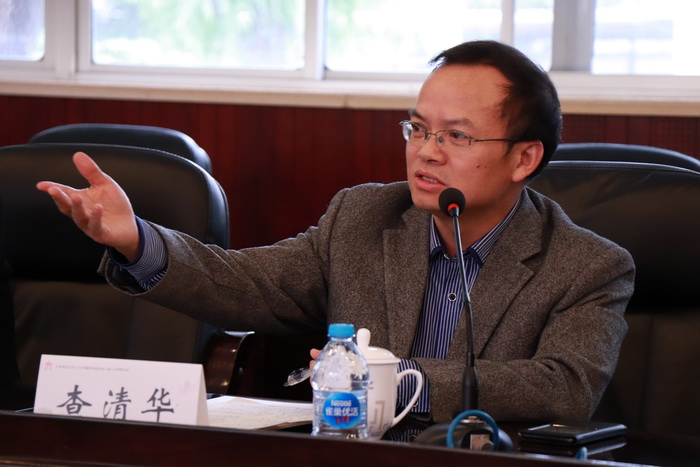 会议由秘书长詹丹主持,查清华院长代表学院致辞,介绍学院发展状况;副秘书长孙珏岷向会议报告学院校友会一年的工作情况;副秘书长张剑光作会长人选变更的情况说明,与会理事以鼓掌方式,支持查清华担任学院校友会会长。