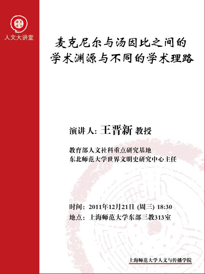 2011.12.21王晋新:麦克尼尔与汤因比之间的学术渊源与不同的学术理路