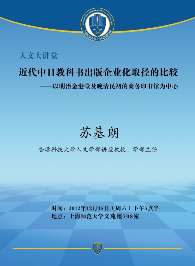 (徐汇)2012.12.15苏基朗:近代中日教科书出版企业化取径的比较——以明治金港堂及晚清民初的商务印书馆为中心