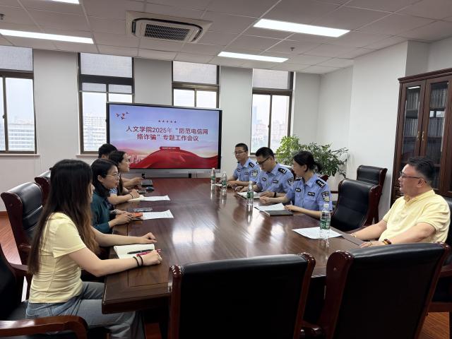 为筑牢校园安全防线,深化警校协同机制,619日下午,MK官方网页版MK(中国)召开了2025年“防范电信网络诈骗”专题工作会议。沪西高校派出所、校保卫处一行到访指导,MK(中国)党委副书记戚静、学工办主任朱倩云及相关辅导员出席会议。双方就当前高校学生群体面临的电信网络诈骗形势展开深入交流,共同探讨校园反诈工作的有效举措。