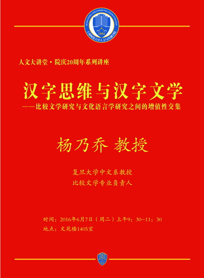 2016.06.07杨乃乔:汉字思维与汉字文学——比较文学研究与文化语言学研究之间的增值性交集