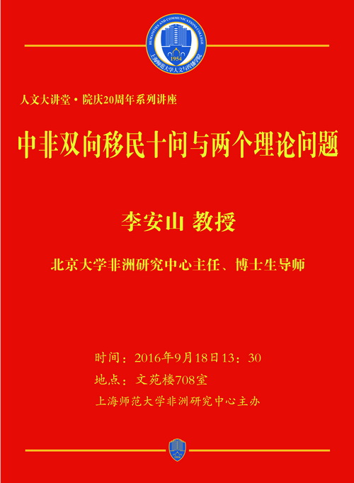 【讲座】2016.09.18李安山:中非双向移民十问与两个理论问题