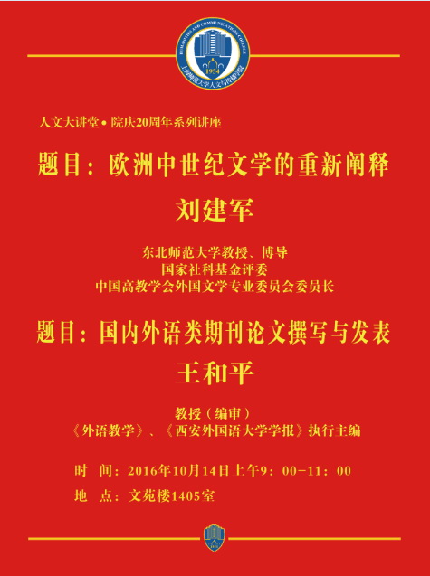 【讲座】2016.10.14刘建军、王和平讲座预告