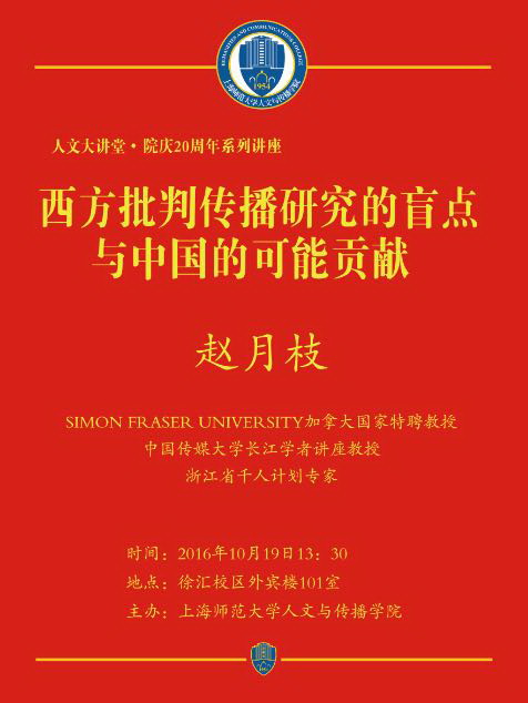 【讲座】2016.10.19赵月枝:西方批判传播研究的盲点与中国的可能贡献
