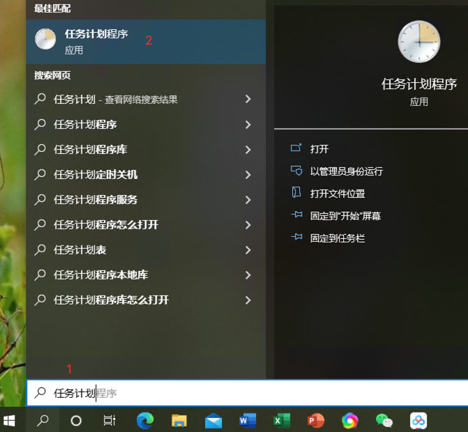 1、在搜索栏键入“任务计划”,点击“任务计划程序”