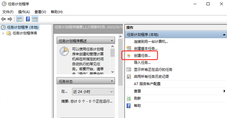 2、点击“创建任务”(注意不是“创建基本任务”)
