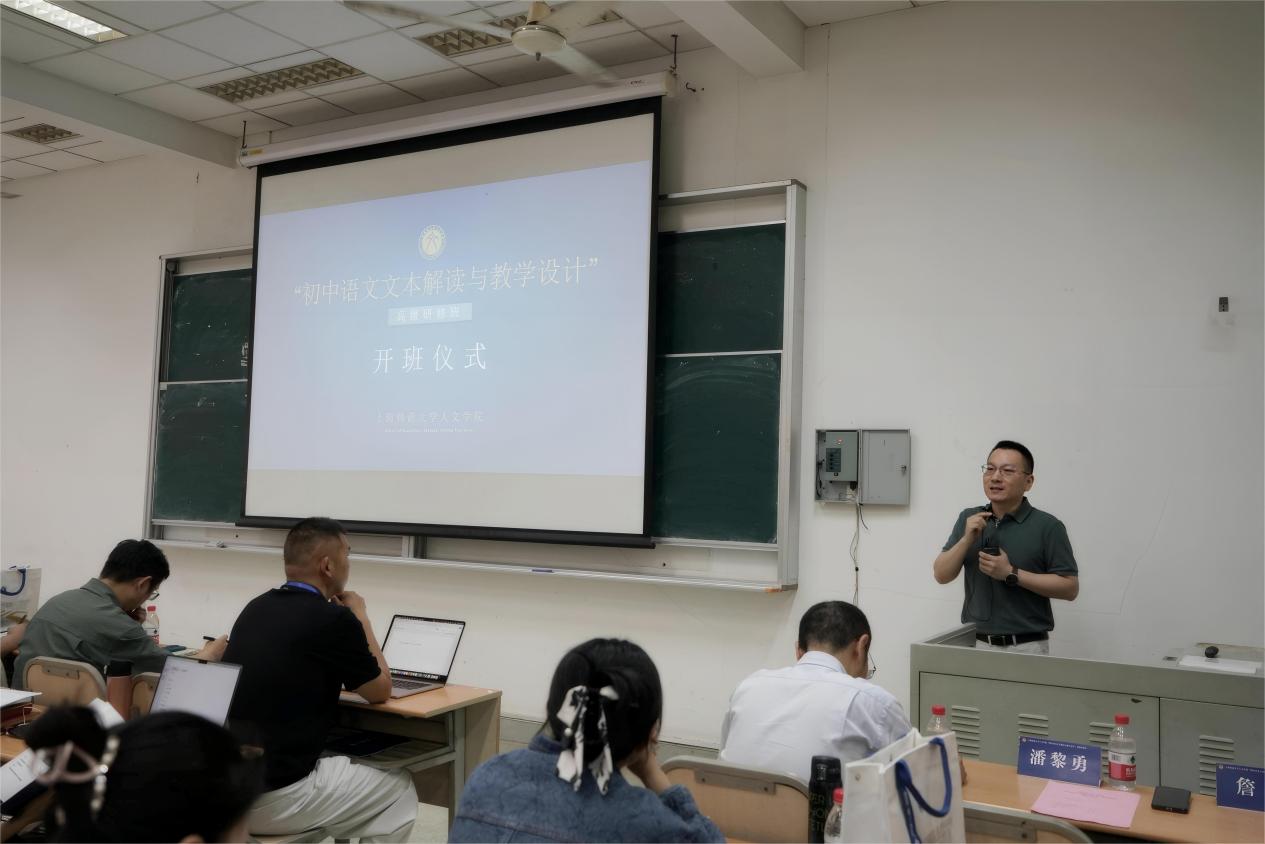 作为教师代表,詹丹教授结合自身深厚的学术研究与教学实践经验,向研修教师提出殷切期望。他首先鼓励大家珍惜本次宝贵的学习机会,积极参与课堂研讨,勇于分享教学见解与困惑。“希望各位老师在研修中真正学有所获,将所学知识内化于心、外化于行,让未来的语文课堂充满‘语文的味道’。” 詹丹教授特别强调,期待学员在交流中建立深厚友谊,形成共同切磋、携手共进的学习氛围。以此次研修为契机,逐步构建理念相通、互学互鉴的 “语文教师专业成长共同体”,通过持续性的经验共享与学术互动,推动语文教育教学质量的整体提升。