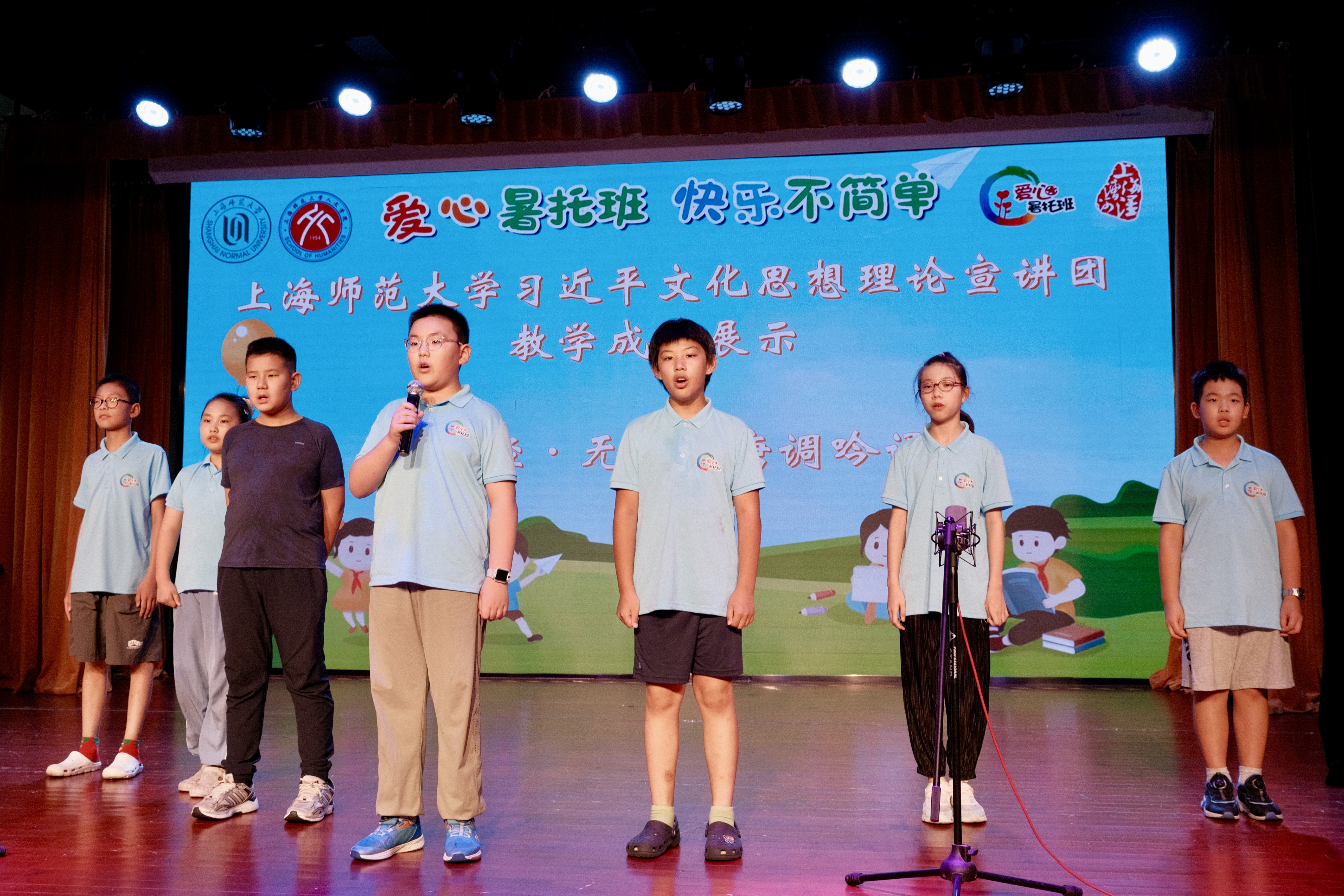 演出在全体学员与志愿者合唱的《世界赠予我的》歌声中落下帷幕。温暖的歌声不仅为本次汇报演出画上圆满句号,更传递出暑托班师生间的深厚情谊。