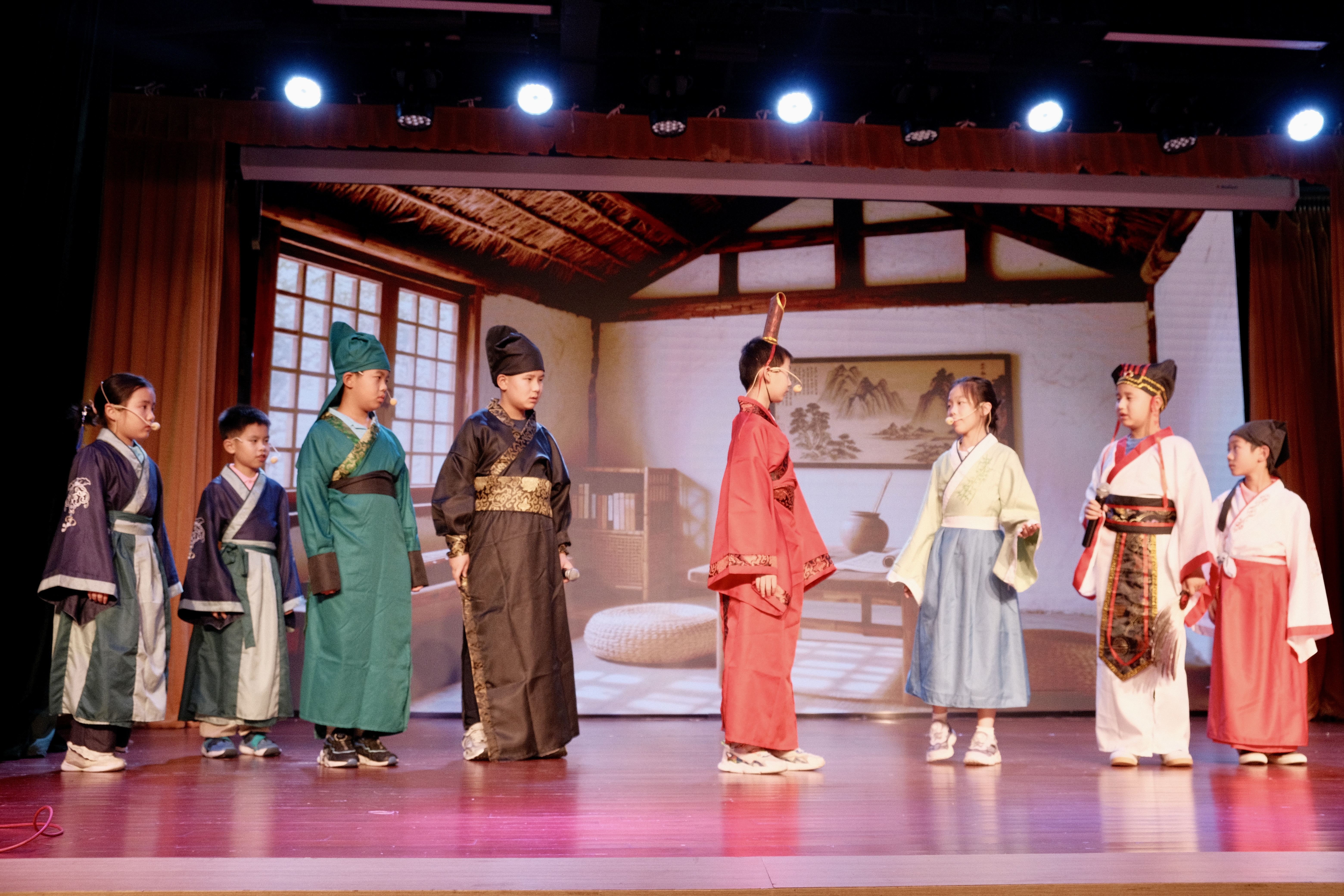 历史剧表演环节同样引人注目。学员们先是以激昂歌声演绎《曹操》,唱出乱世英雄的豪情;随后通过《三顾茅庐》的童真呈现,再现刘备求贤若渴的经典场景,让观众身临其境感受历史故事的魅力。