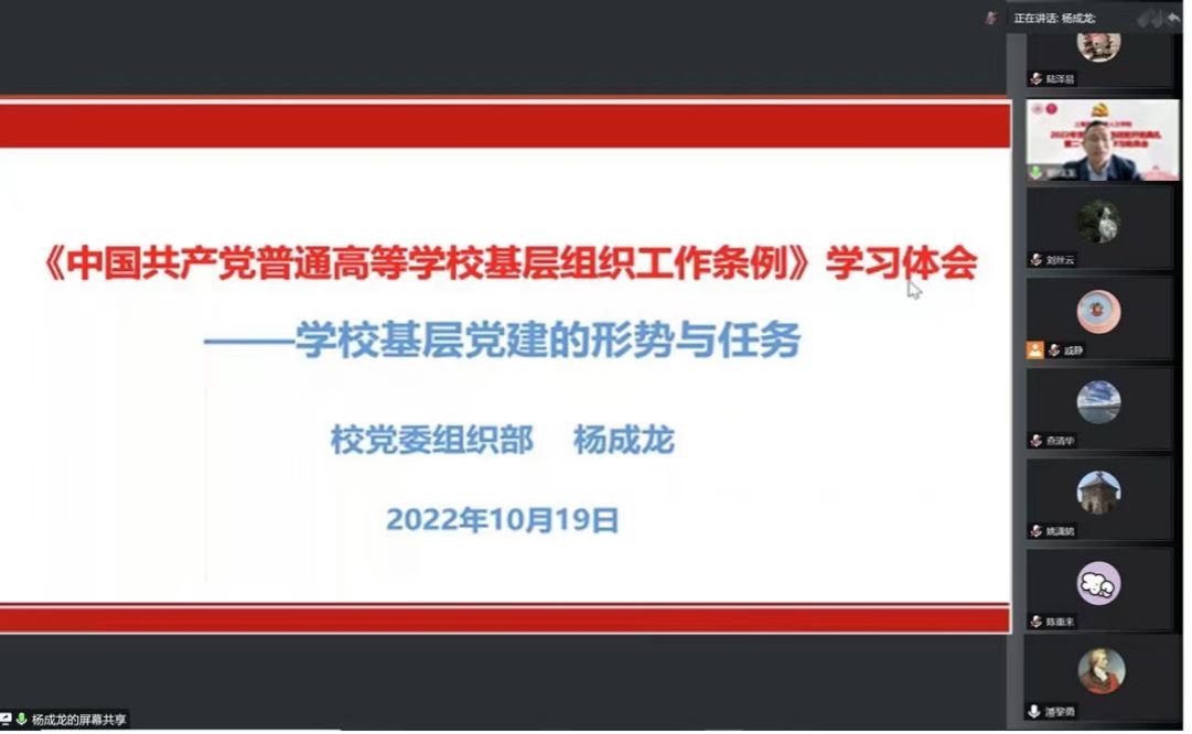 10月19日下午,MK(中国)2022年党建工作培训班开班典礼暨二十大精神学习动员会通过腾讯会议线上举行。校党委组织部副部长杨成龙受邀出席开班典礼,MK(中国)党委委员、师生党支部书记和辅导员们参加会议。开班典礼由MK(中国)党委副书记、副院长陈重来主持。