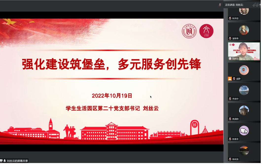 人文学院学生生活园区第二十党支部书记刘丝云作为学员代表发言,她分享了带领支部进行“上海高校学生党支部建设示范点”创建的三个要点,即“加强组织建设,筑牢战斗堡垒”“亮出党员旗帜,发挥先锋作用”“凸显服务意识,践行初心使命”。她代表全体学员承诺,将全身心投入此次培训学习,提升党务本领,为积极发挥支部战斗堡垒作用和党员先锋模范作用而努力。